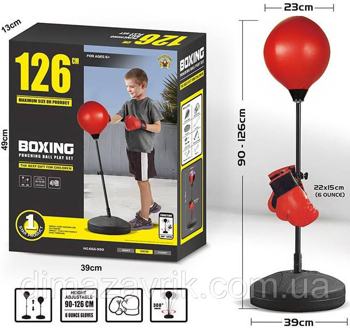 Дитячий боксерський набір Boxing 666-999 BM Боксерська груша діаметром 23 см, стійка 90-126 см, 2 рукавички
